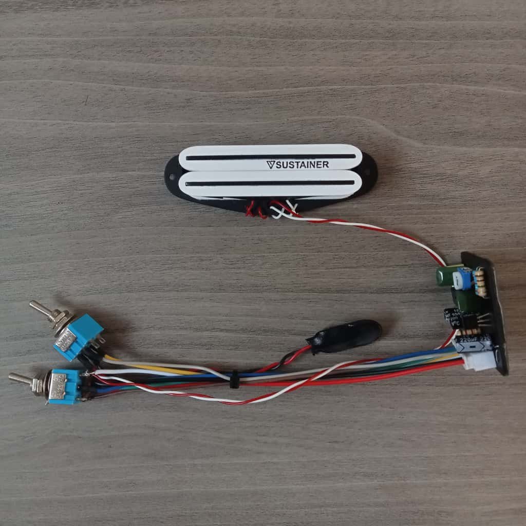 Sustainer or sustaniac is a tool to extend the sound of the guitar and create sustain feedback (shrill) with completeness as shown in the picture and for the neck position. the sound produced for this